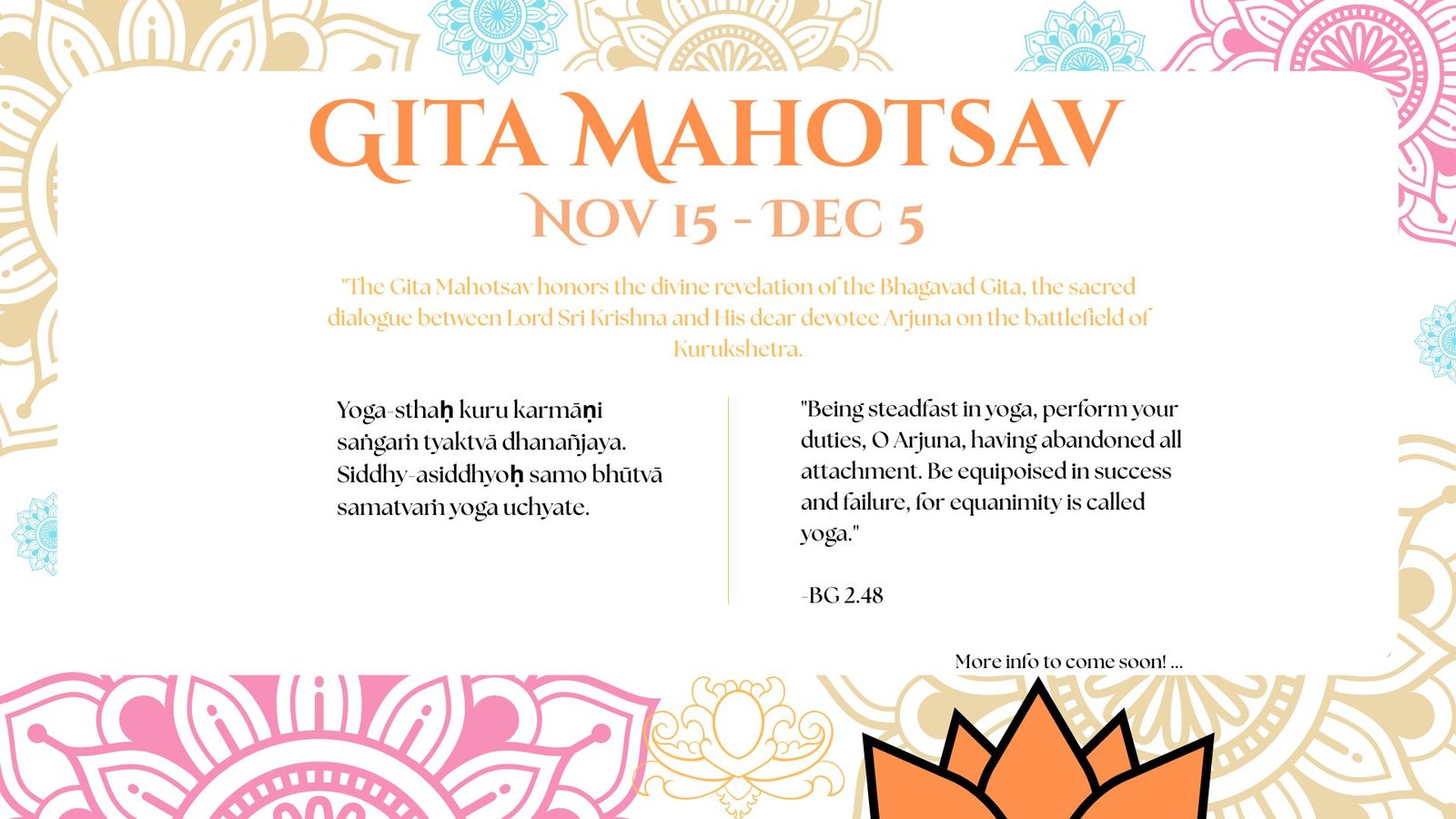 Join us for our Summer Schedule! Temple is open daily from 4:30 AM to 1:00 PM & re-open from 4:15 PM to 8:30 PM.